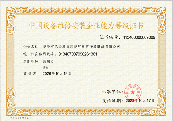 中國設(shè)備維修安裝企業(yè)能力等級證書
